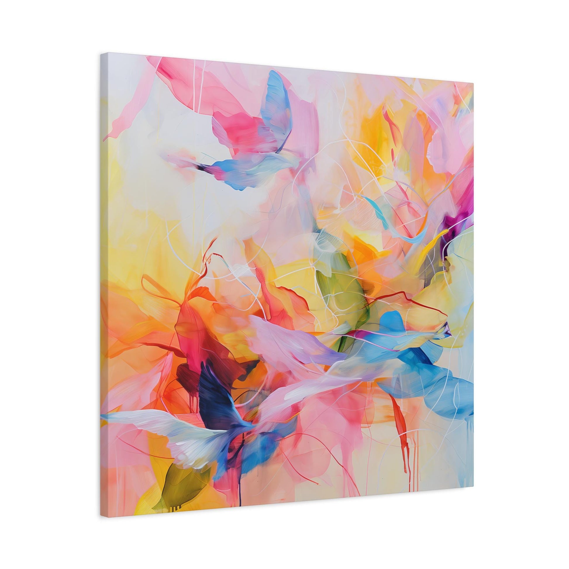 Canvas Wall Art, Abstract Painting, Bright Pastel Brush Strokes, Birds in Flight, Cheery Home Decor, Matte Print, Stretched Artwork,