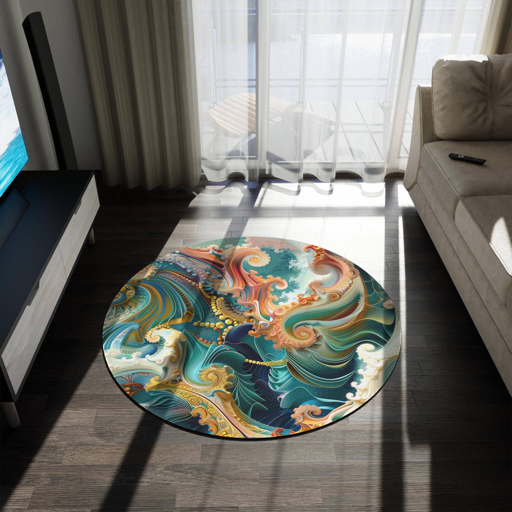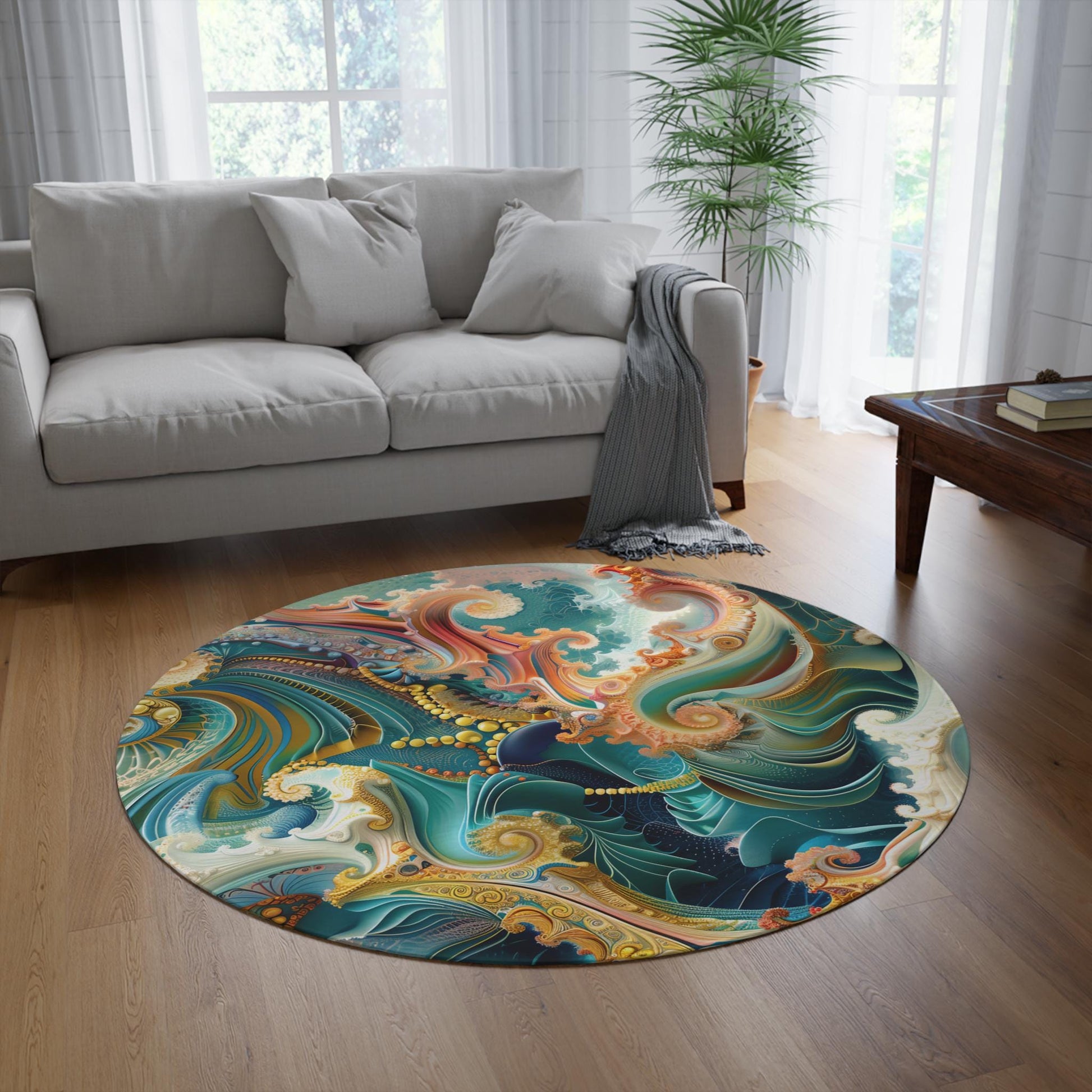 Colorful Abstract Round Rug - Boho Decor, Living Room Carpet, Bedroom Accent, Unique Area Rug, Home Warmth