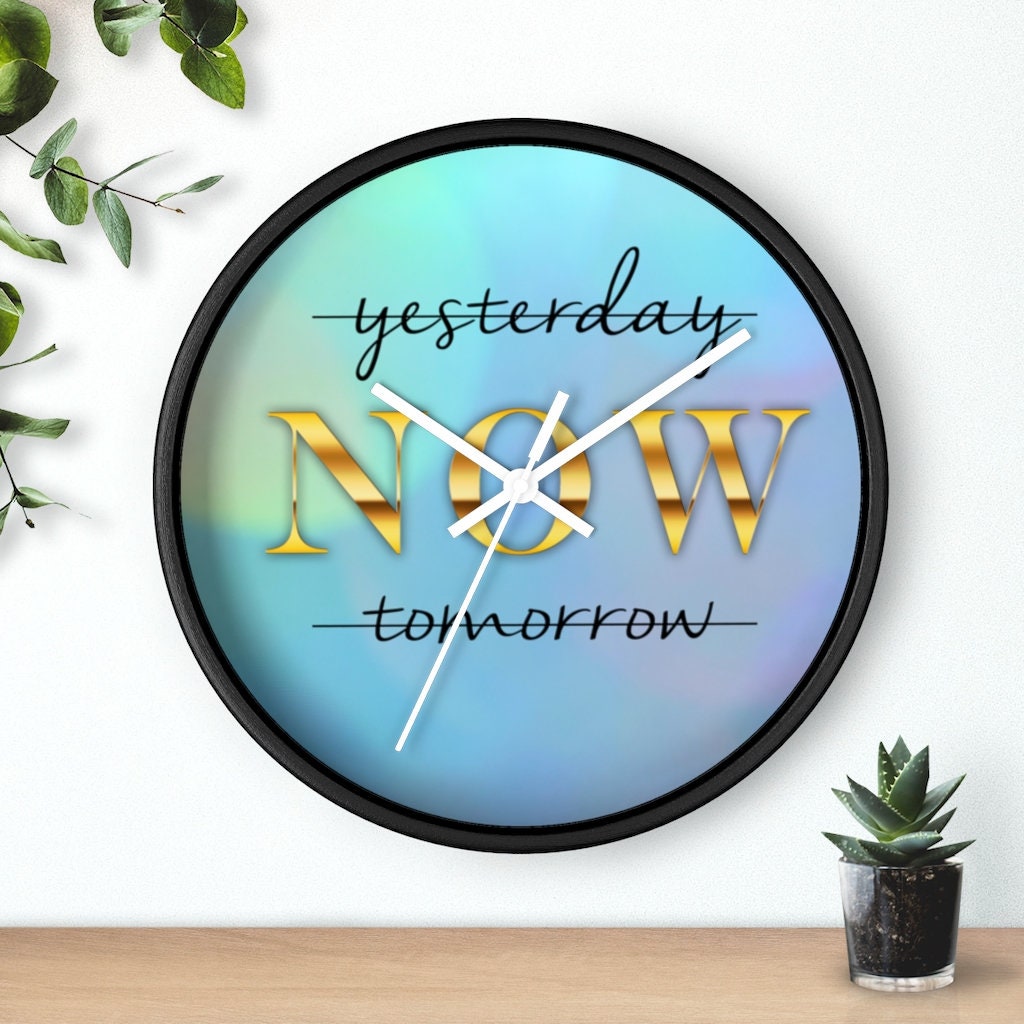 Inspirational Wall Clock, Motivational time piece, Yesterday NOW Tomorrow
