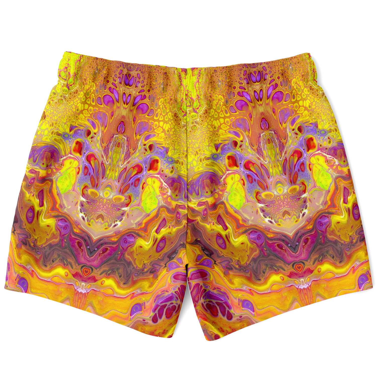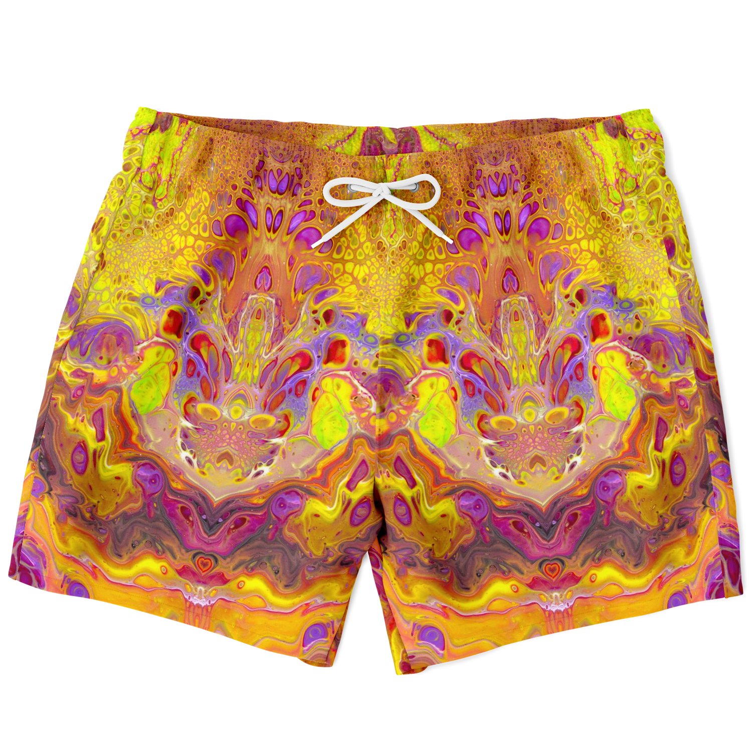 Look and stay cool with these shorter-length swim trunks that hit above the knee. They come in a fast-dry fabric, and feature a drawstring waistband, mesh basket lining and mesh-lined side pockets.