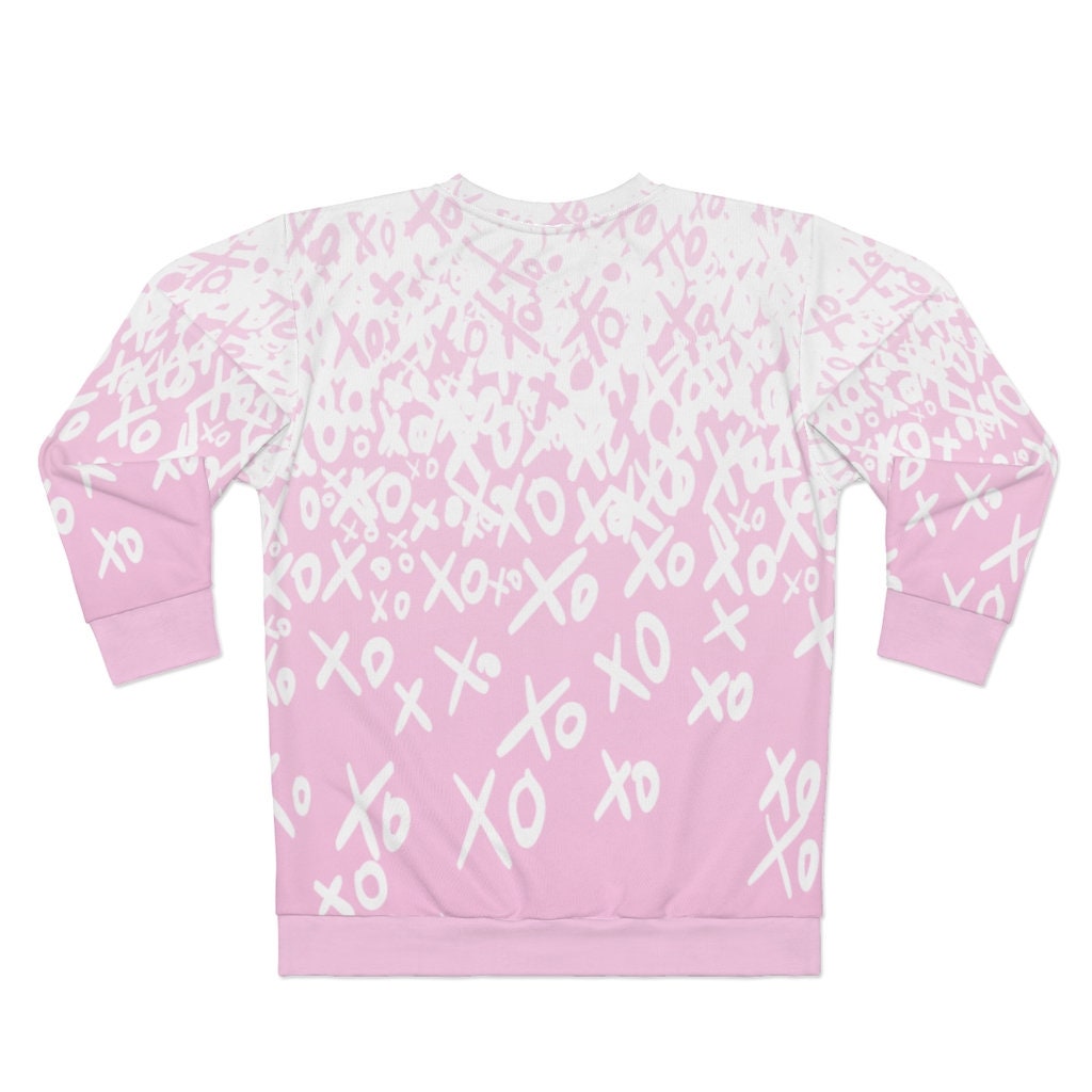 Pink Sweatshirt, Love Signs, XOXO, AOP Unisex Sweatshirt